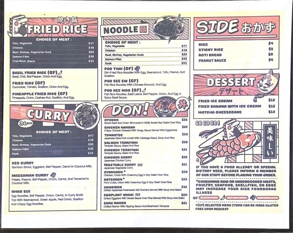 From the Sauteed Cashew Nut dish, rich with nutty flavors, to the Gyudon, featuring tender beef in a savory soy dashi, each plate is crafted with care and passion. RaCha prides itself on inclusivity; there are abundant vegan options ensuring no one is left out. Complimenting the exceptional food, the ambiance is warm and inviting, featuring lovely decor that creates a cozy dining experience.